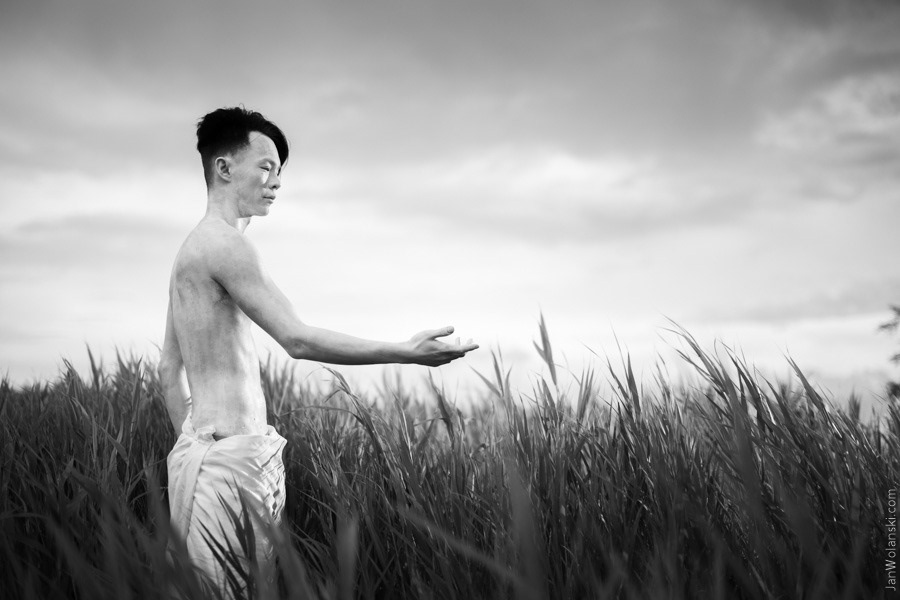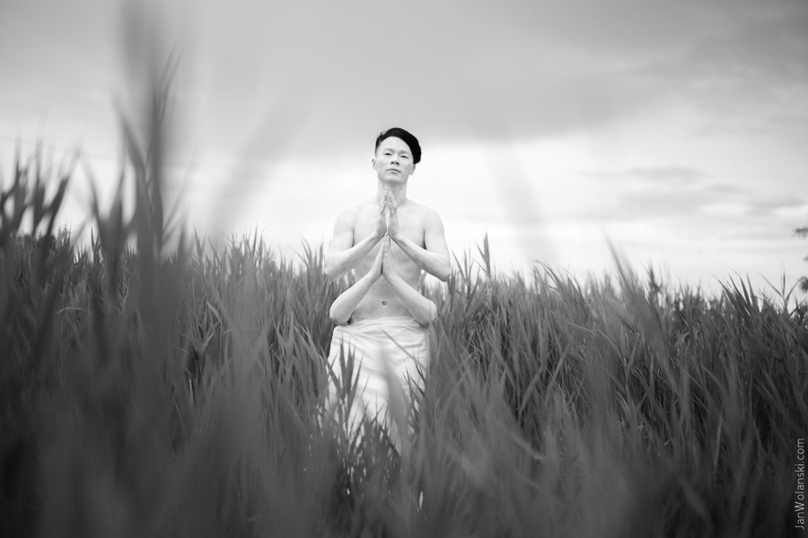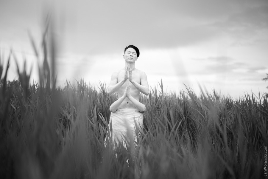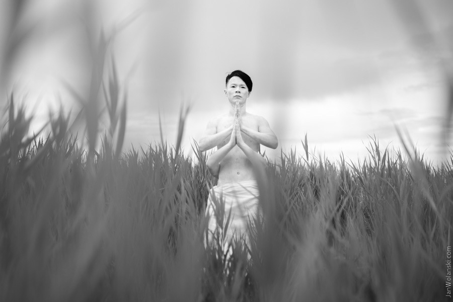 Portrait in serenity and pink rose